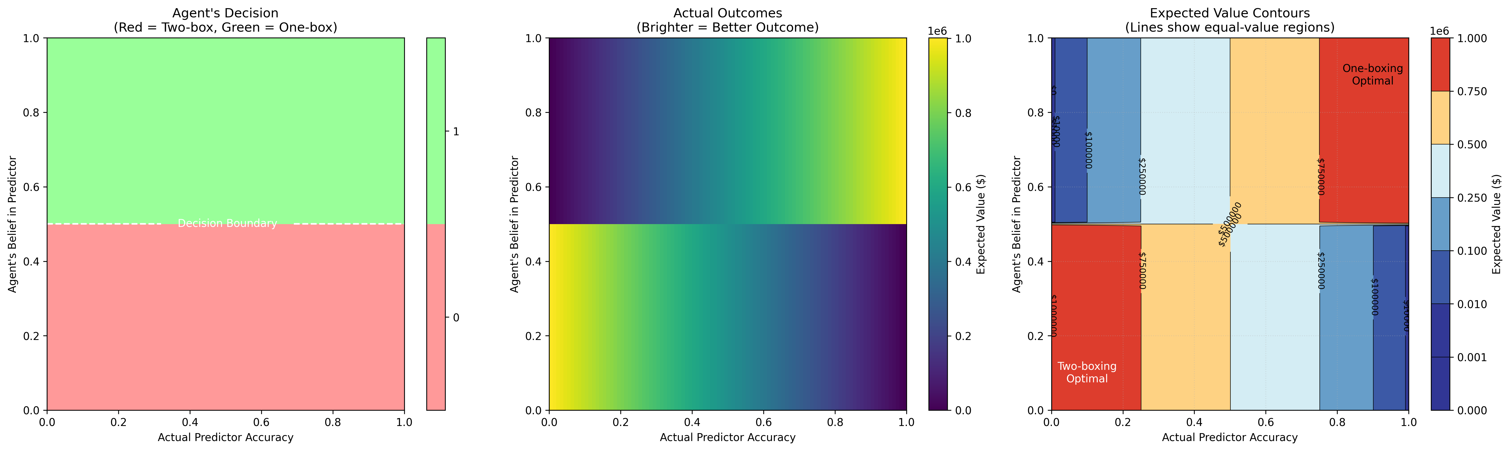 Interestingly the surface for determining behaviour based on the belief of the player rather than the accuracy of the predictor itself. Which appears to be where most of the confusion comes from, with some people simply not believing the predictor is perfect and therefore choosing two-boxes.