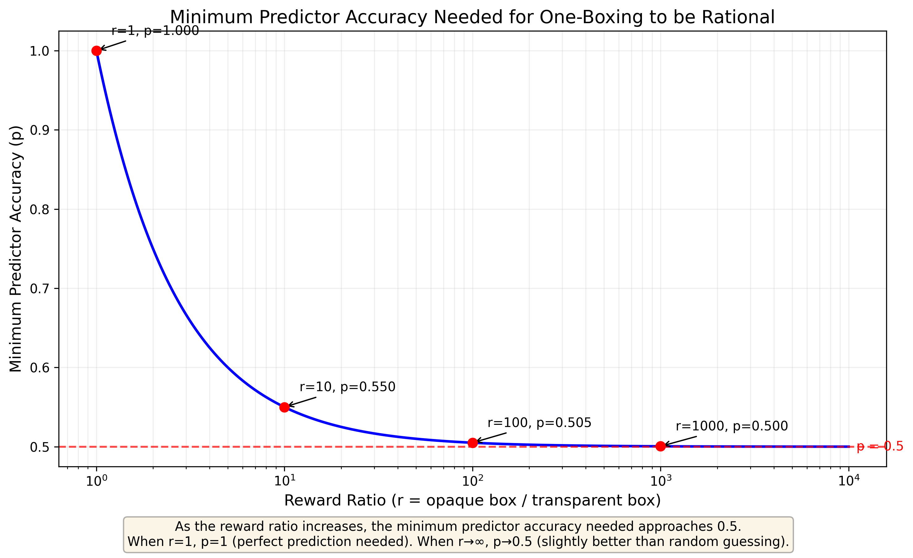- r = the reward ratio (opaque box amount / transparent box amount)